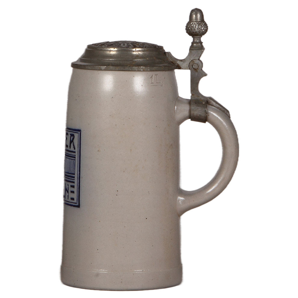Brewery stein, stoneware, 1.0L, incised, marked Gebruder Stockhammer Salzburg, Kloster Mülln, 1907, matching pewter lid, mint.