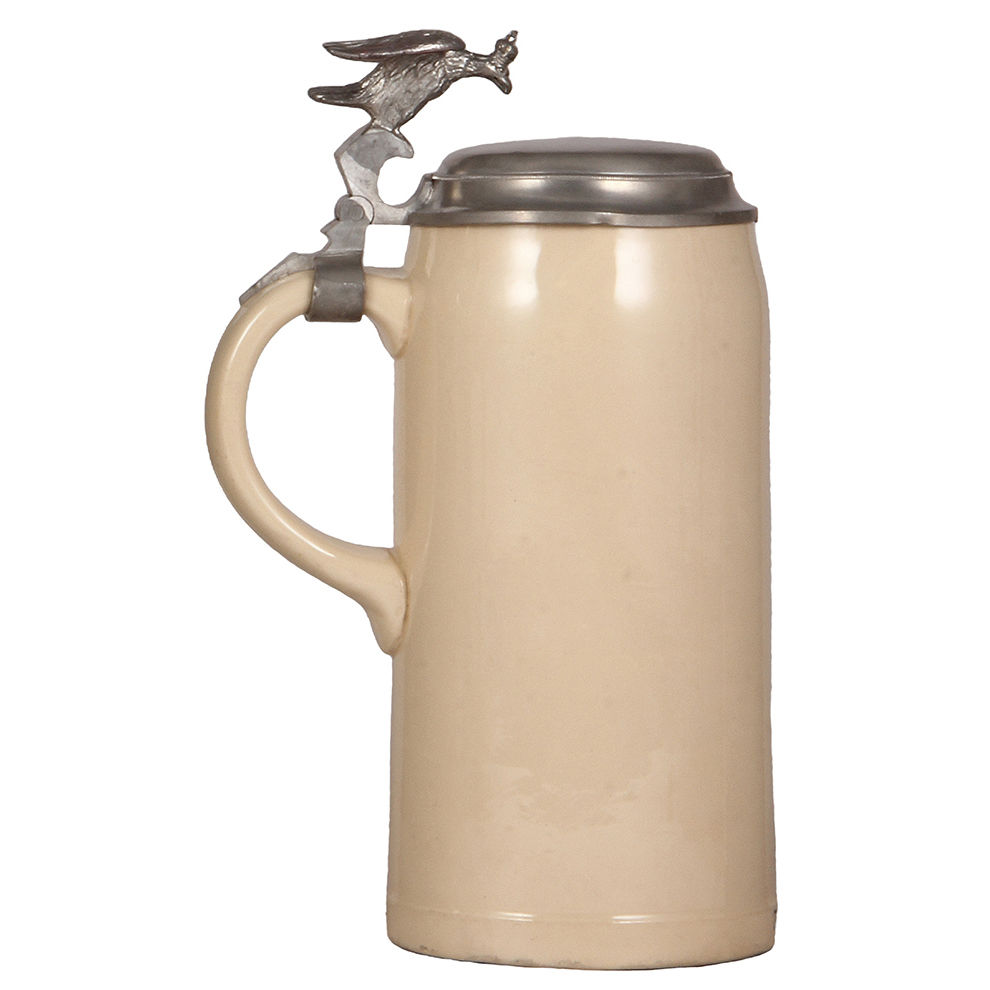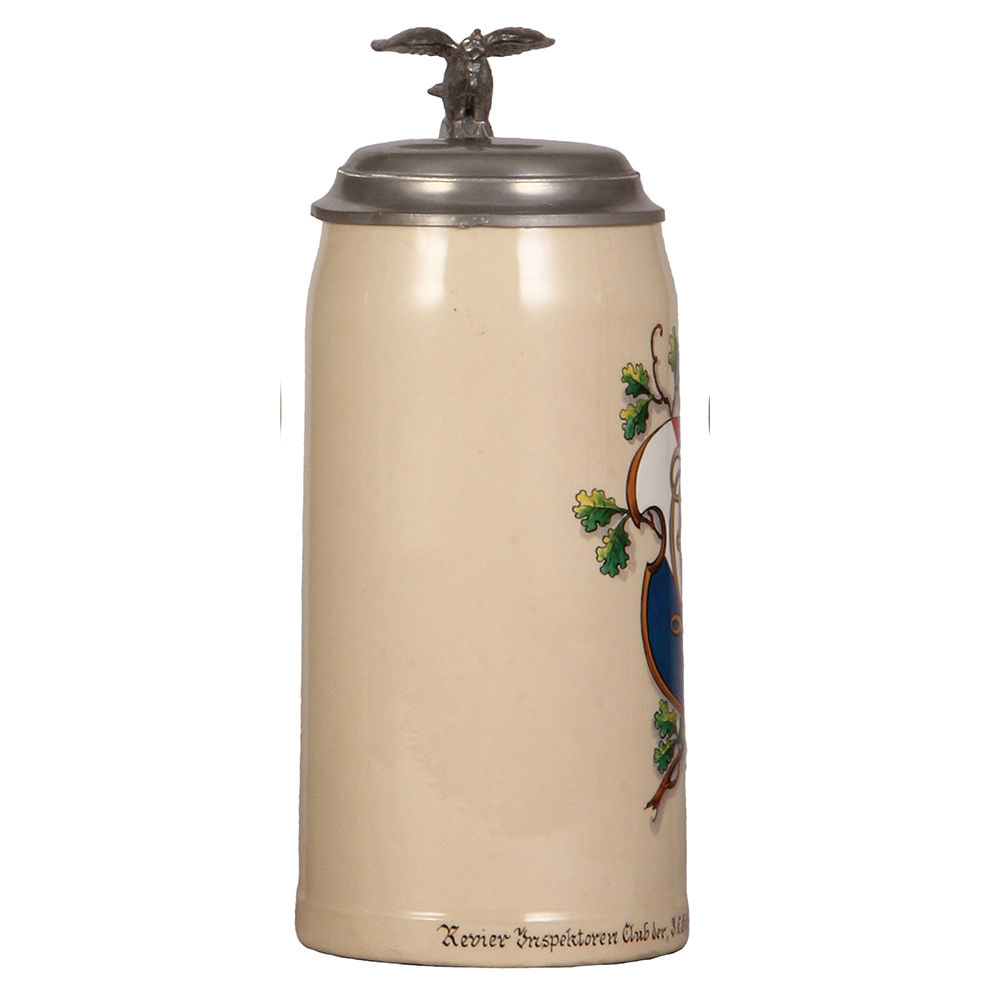 Club stein, Mettlach 1526, 2.0L, print-over-glaze & hand-painted, Revier Inspektoren Club, 1912, pewter lid, mint.
