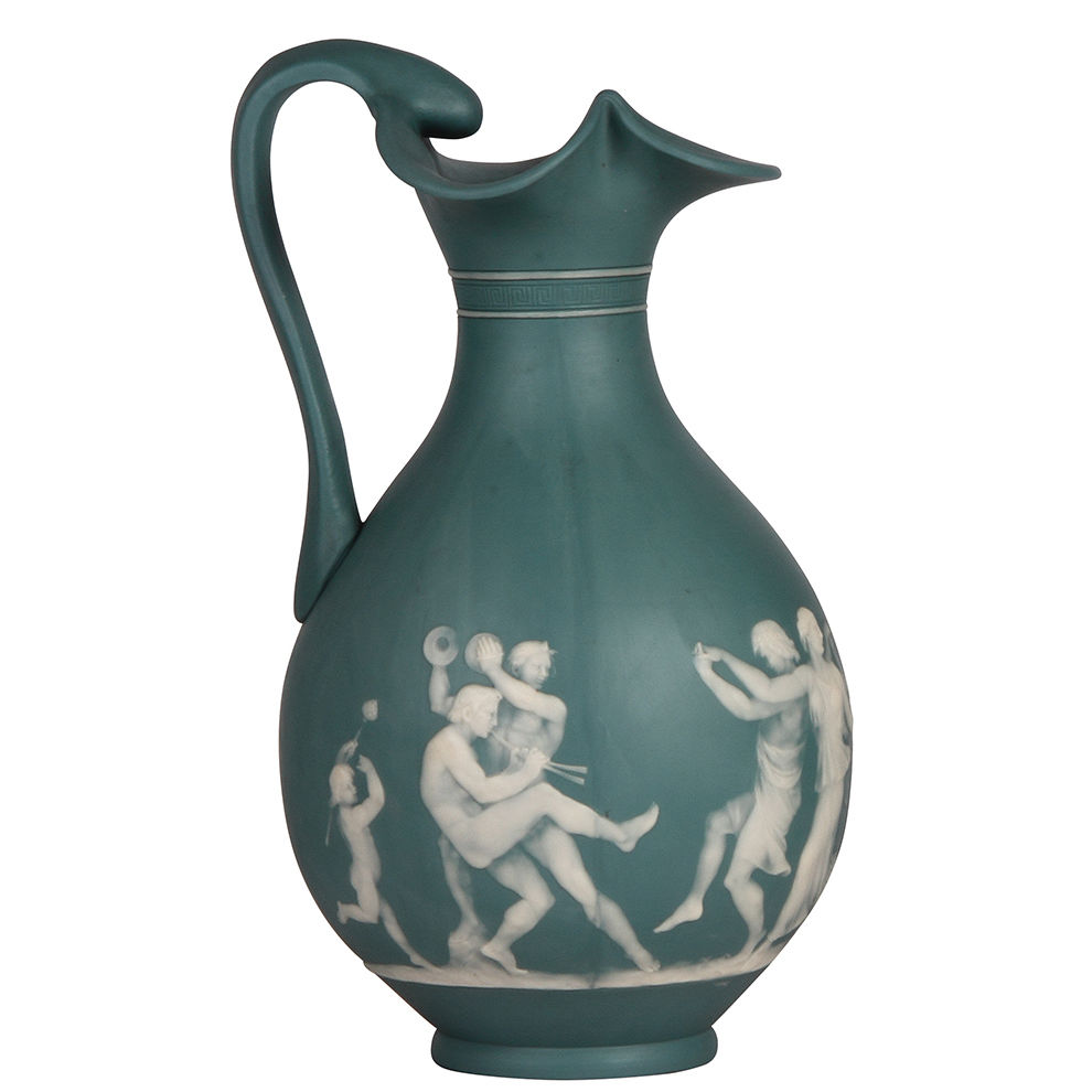 Mettlach pitcher, 12.5″ ht., 7012, phanolith, rare, mint.