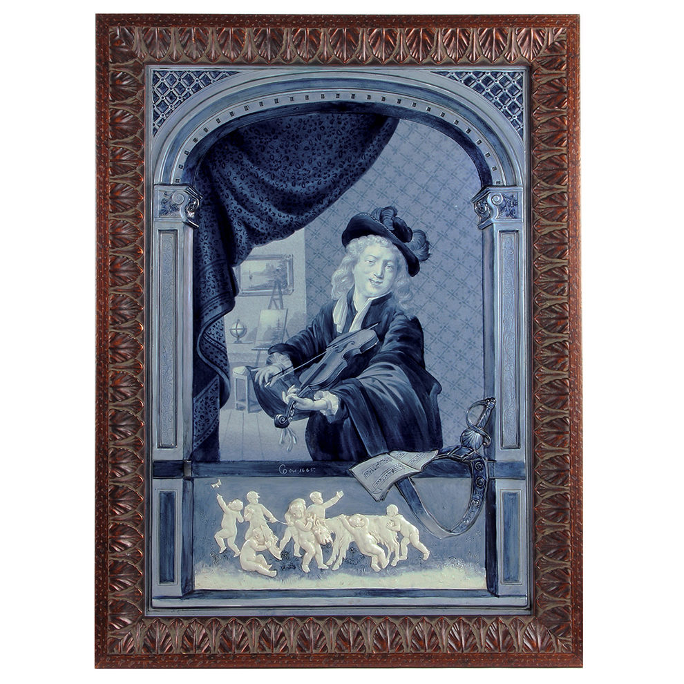 Mettlach plaque, 18.5” x 26.0”, with frame 22.0” x 29.5”, 5231/2274, Delft, chips on backside within closed frame, otherwise mint.