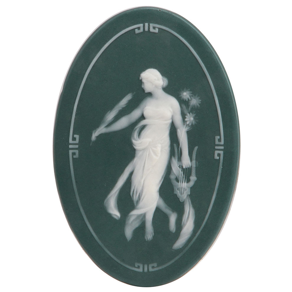 Mettlach plaque, 6.1″ x 4.0″, 7070, phanolith, by Stahl, mint.