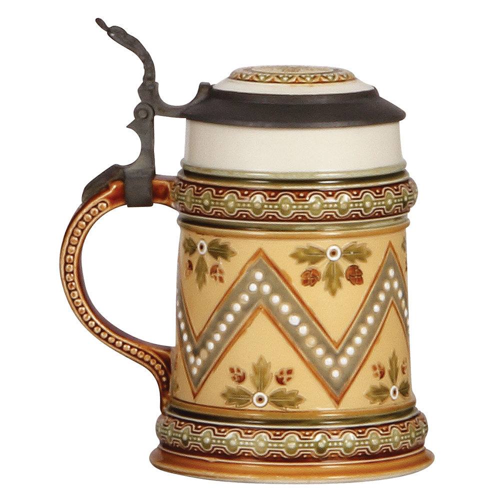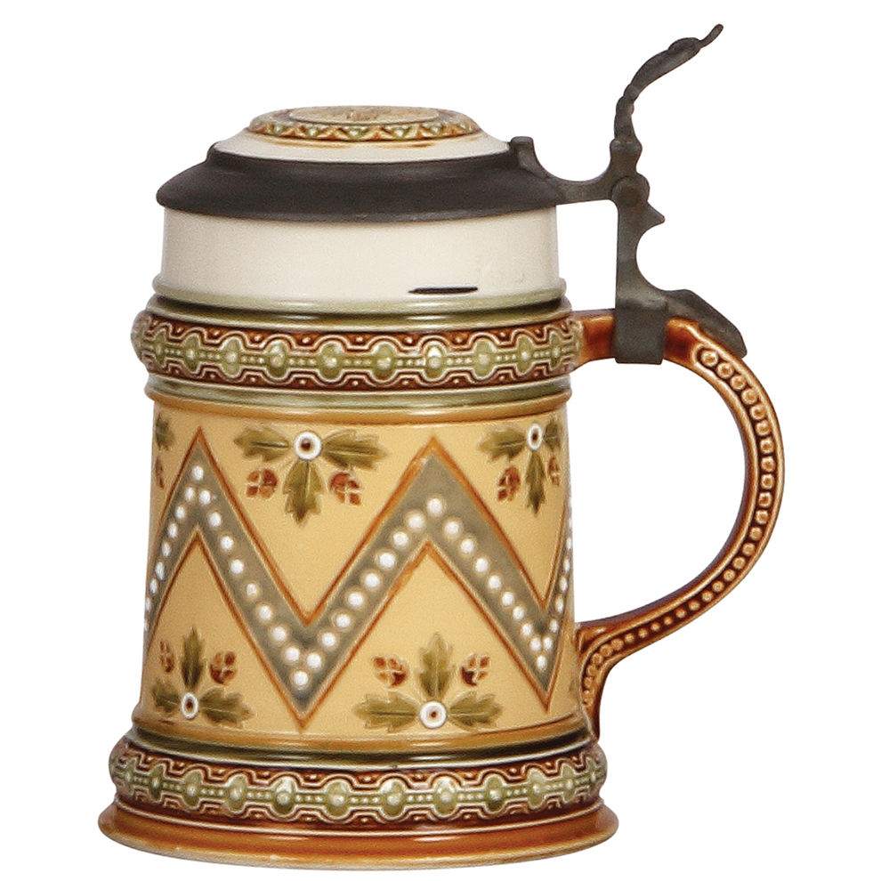 Mettlach stein, .3L, 1788, mosaic, inlaid lid, mint.