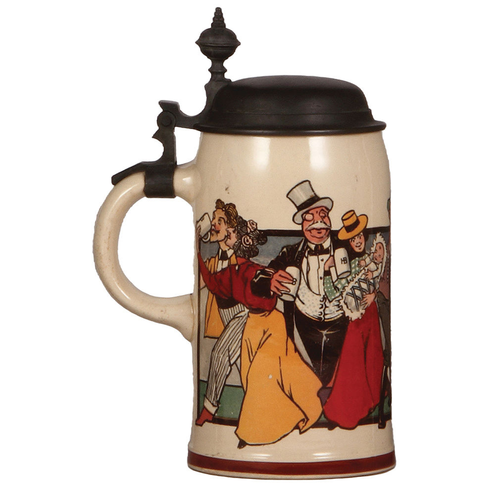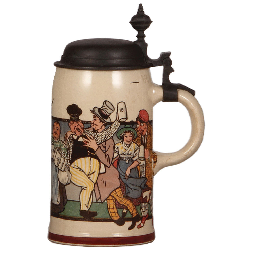 Mettlach stein, .5L, 1102[1909], PUG, Bavarians, pewter lid, mint.