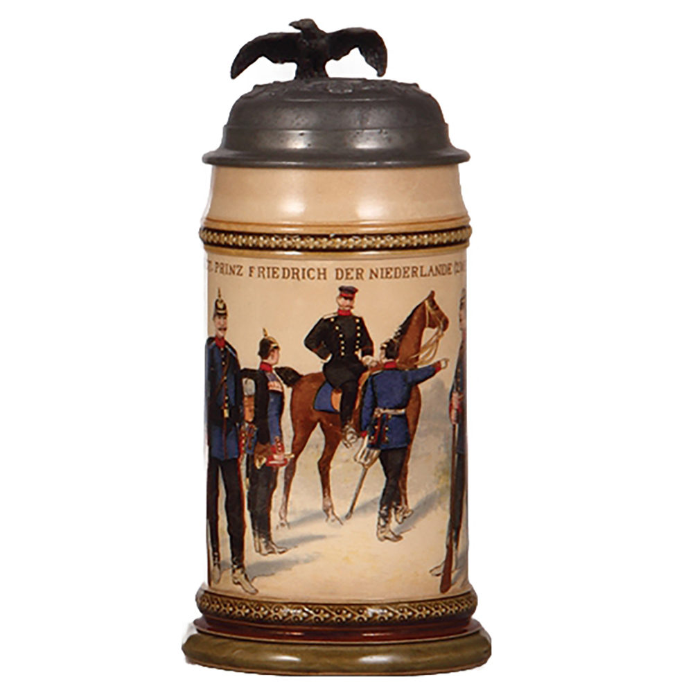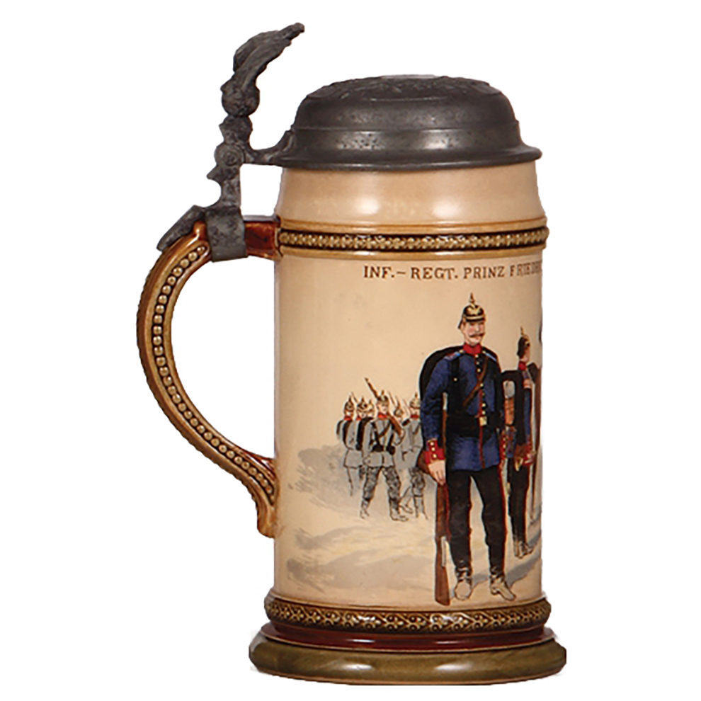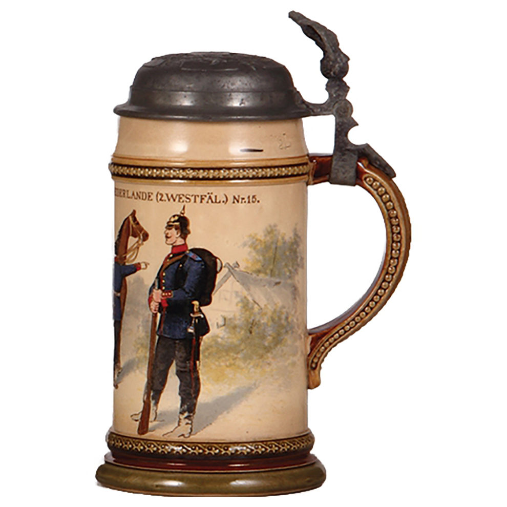 Mettlach stein, .5L, 895[2140], PUG, Inf. Regt. Nr. 15, pewter lid, a little glaze browning, otherwise mint.
