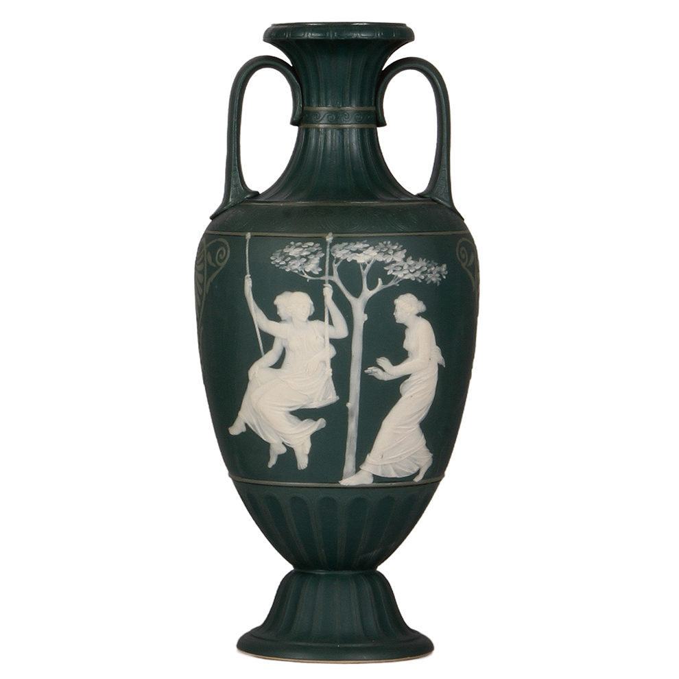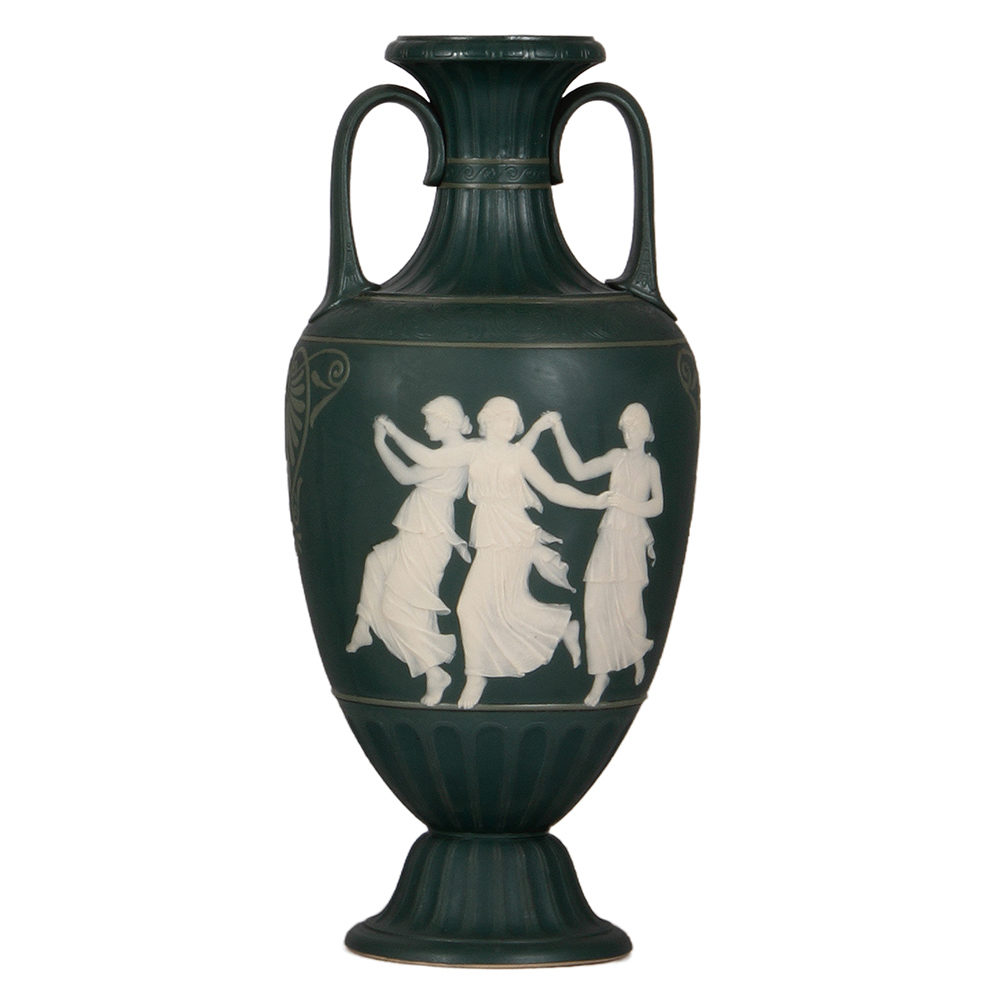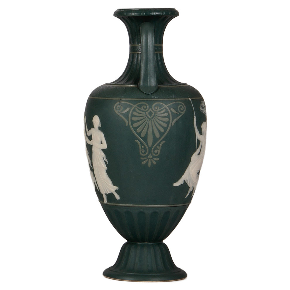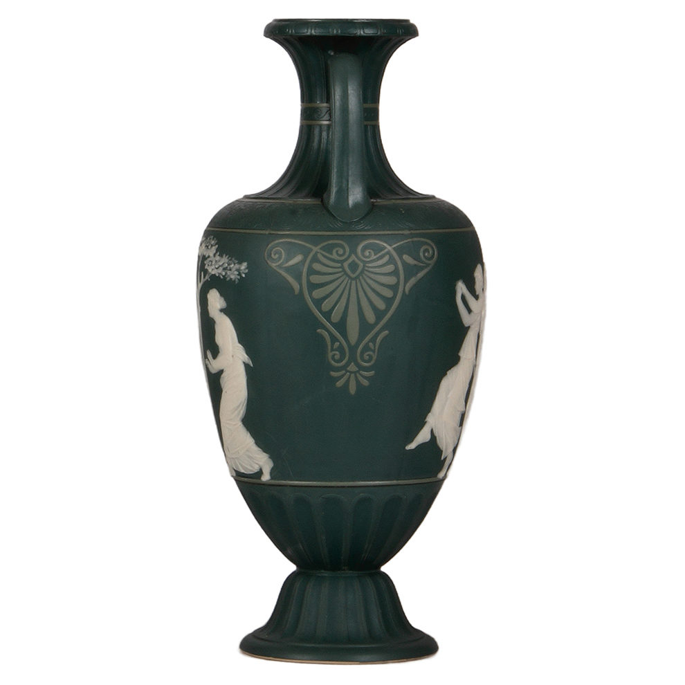 Mettlach vase, 14.6″ ht.,7057, phanolith, mint.
