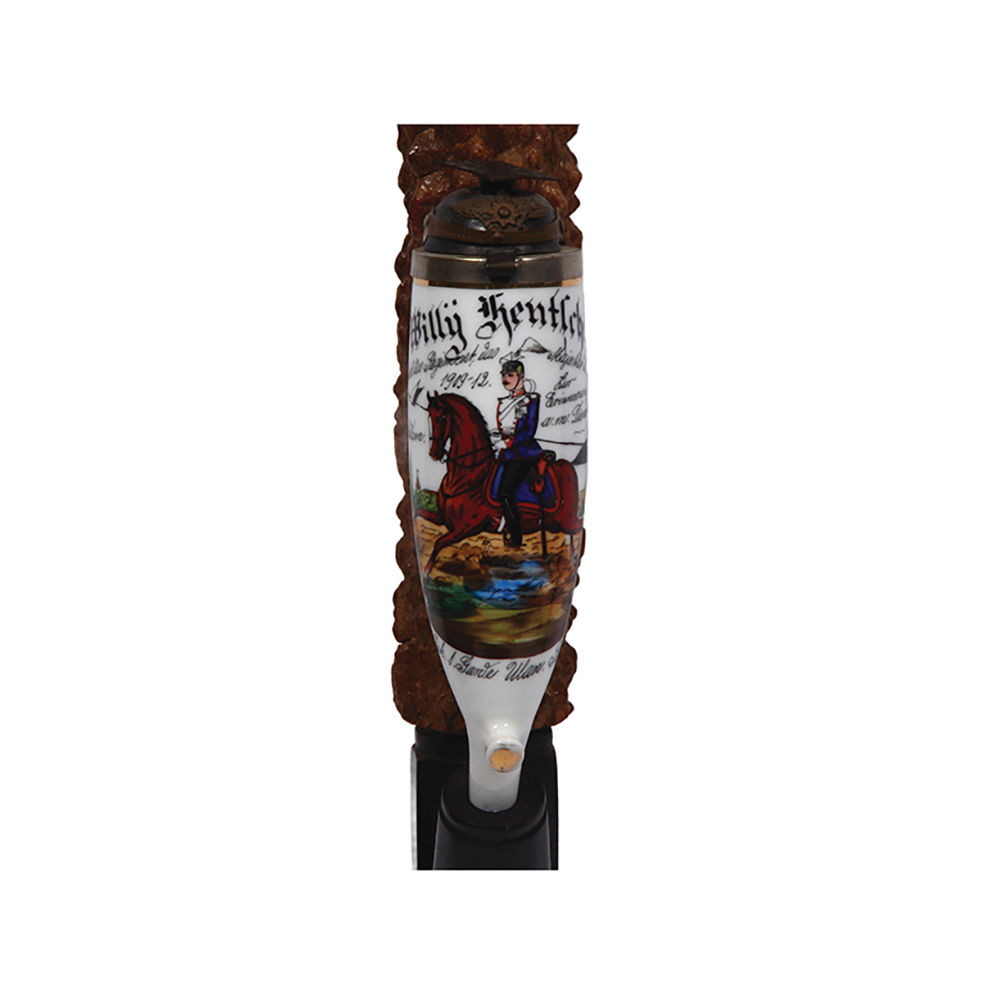 Regimental pipe, 75.0″ l., porcelain bowl, 5. Esk., 1. Garde Ulan Regt., 1909 – 1912, named to: Willÿ Kentschel, one worn internal connector replaced with metal tube, good condition.